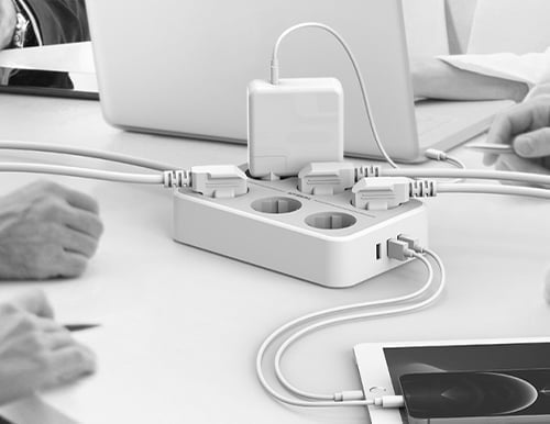 Traditional power strips clutter desks and take up valuable floor space. The expander mounts directly to the wall, keeping cables neat, freeing your desk, and creating a cleaner, more organized environment.
