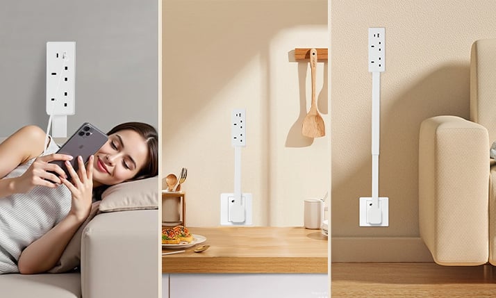 Designed to fit flush against the wall, this expander saves space while keeping cables organized and out of the way. Its sleek, modern look blends seamlessly into any home or office environment.