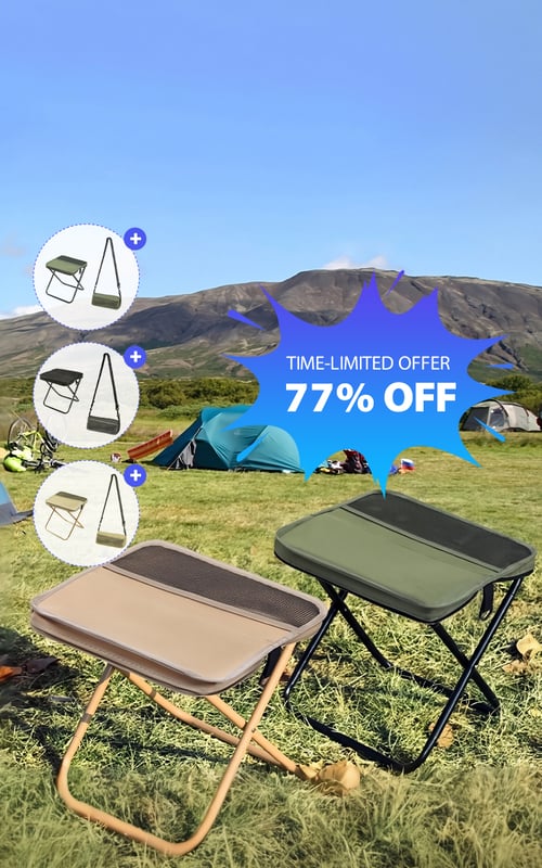 Folds into a compact pouch (just slightly larger than a phone!) and unfolds into a sturdy seat supporting up to 330 lbs—perfect for travel, queues, or outdoor adventures.