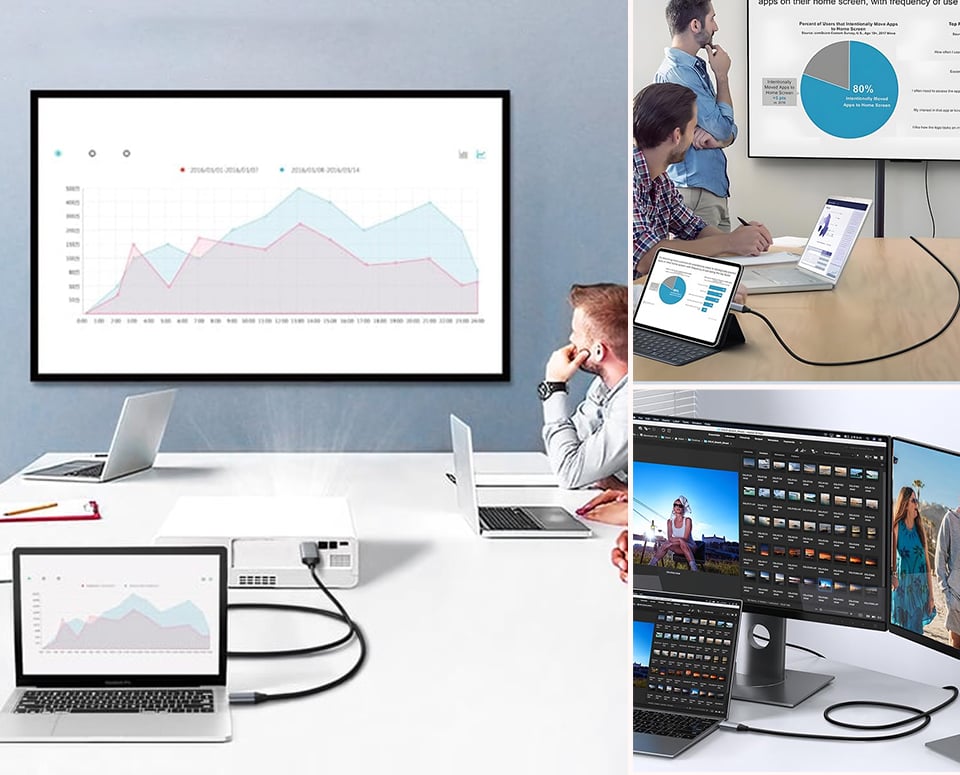 “Discover our USB-C to HDMI Cable 8K 60Hz — stream ultra-clear video and audio instantly. No extra drivers or power needed for a seamless plug & play experience every time.”